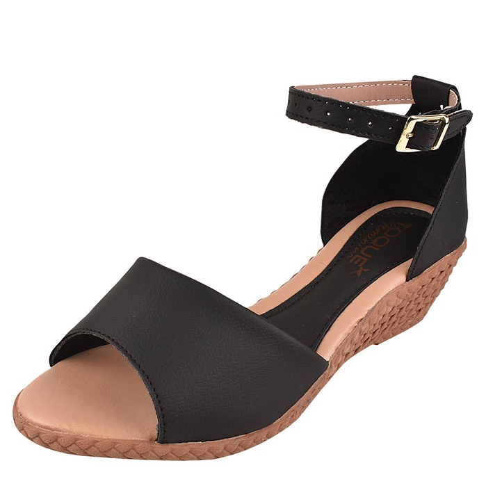 Sandália Anabela Calcanhar Fechado Salto Baixo Toque Feminino