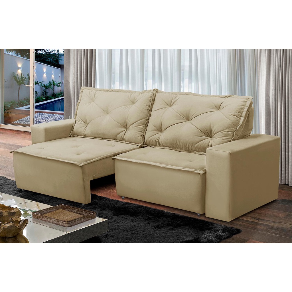 Sofá Retrátil e Reclinável 3 lugares com Molas 1,80m Ana Suede Bege Adonai Estofados