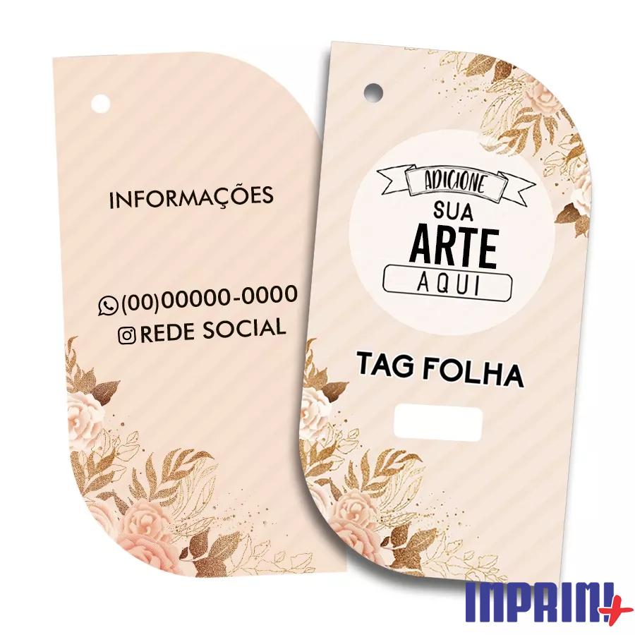 TAG ROUPA EM FORMATO FOLHA – IMPRESSÃO FRENTE E VERSO
