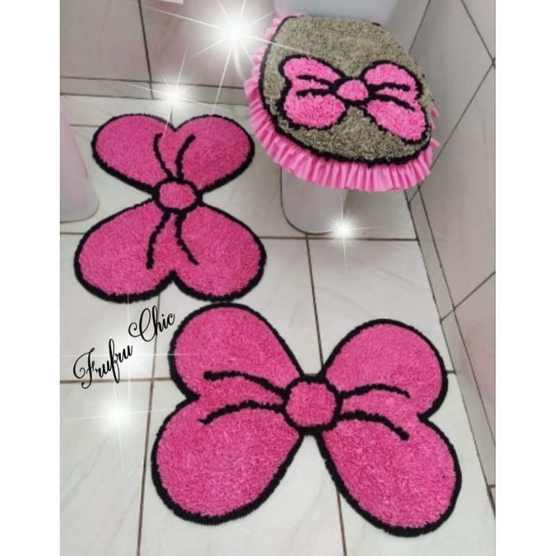Tapete frufru é útil na proteção do piso, charmoso e decora o ambiente, prático e fácil de lavar.