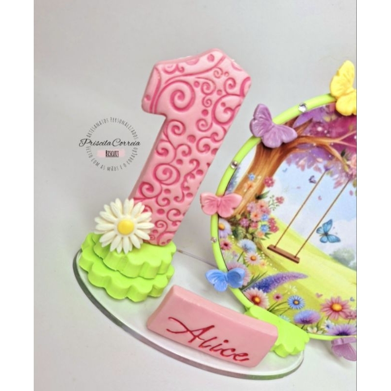 Vela de Aniversário em Biscuit Jardim Encantado/ Jardim das Borboletas.